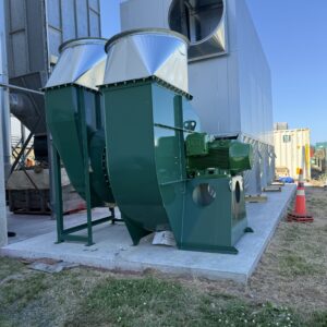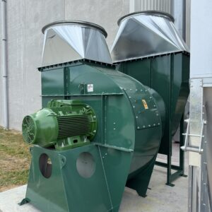 We manufactured a FA1120 extraction fan with a 75-kW motor and an ABB variable speed drive. This lets the operators adjust airflow easily and helps the system run more efficiently.