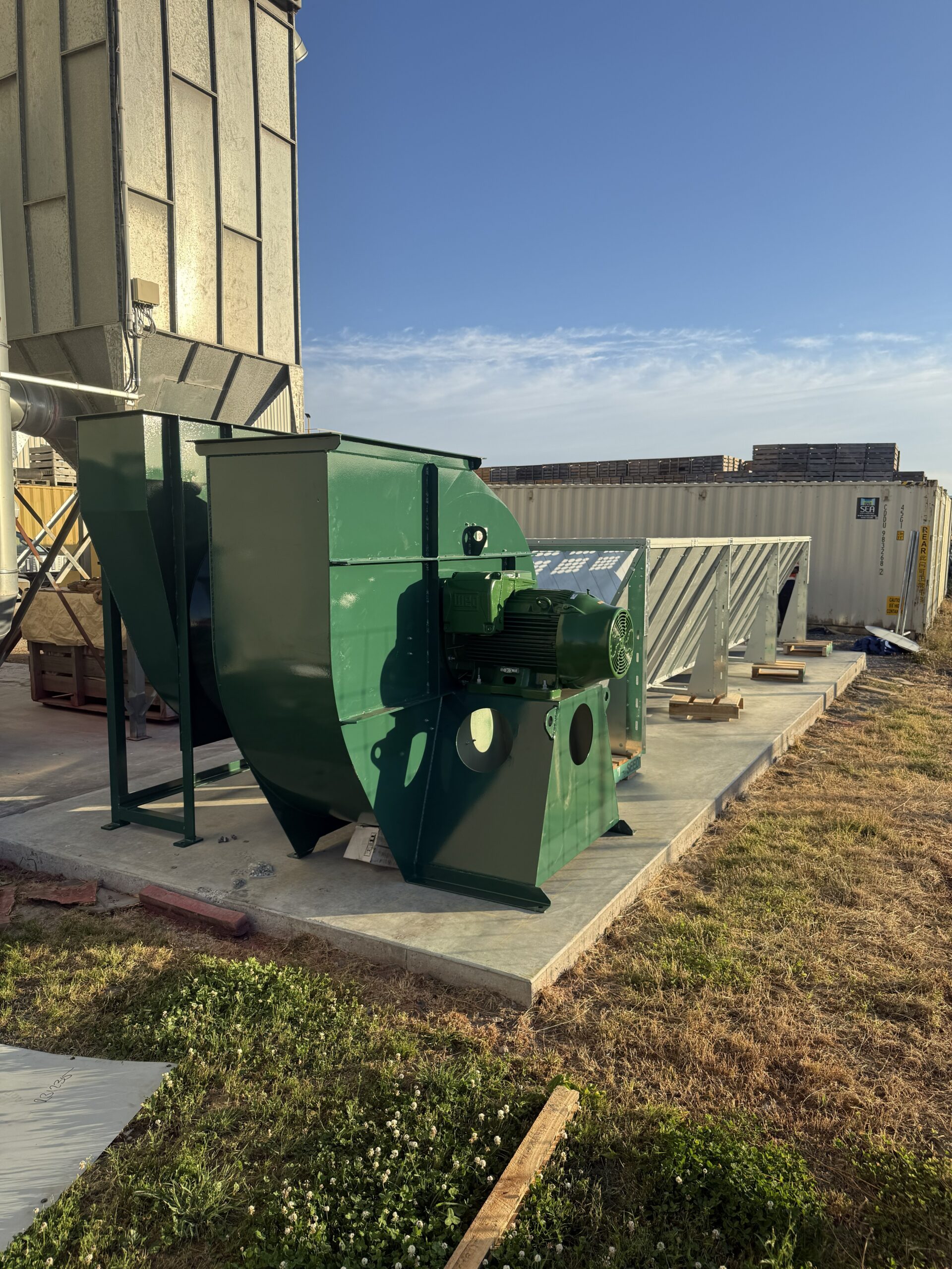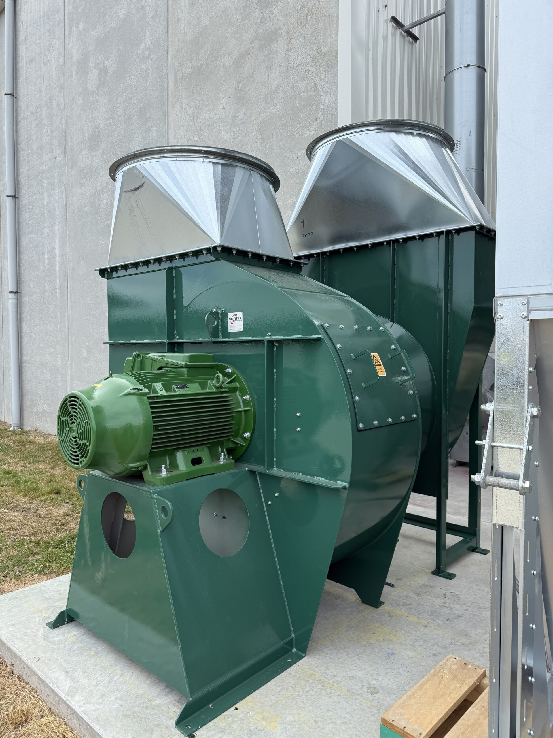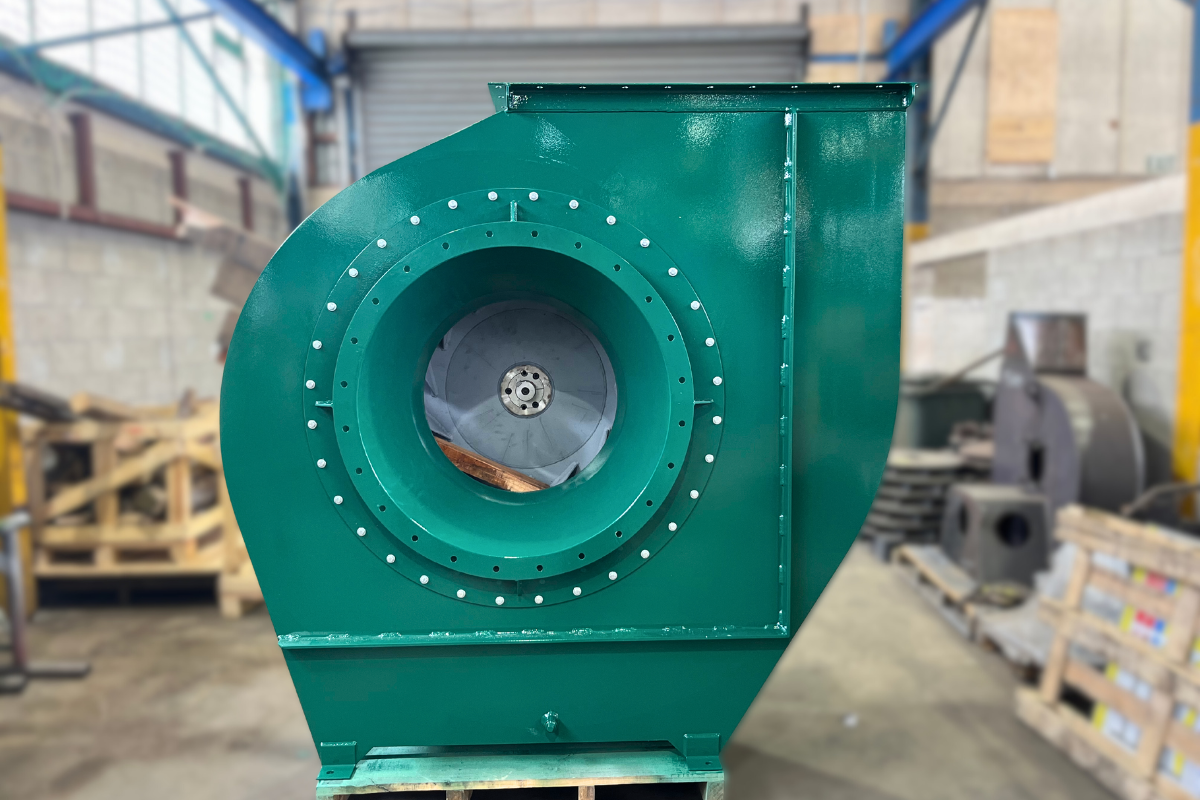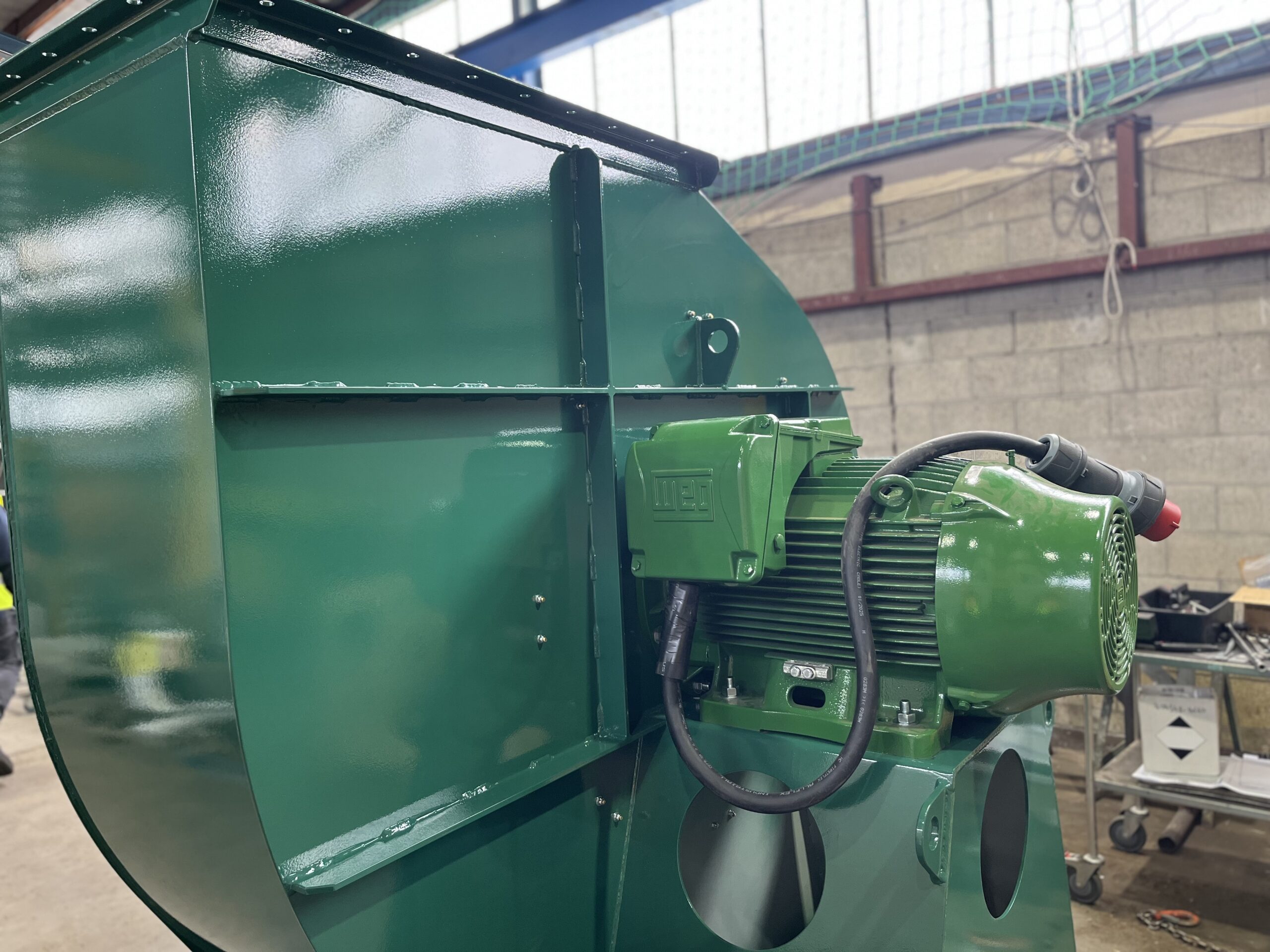 We manufactured a FA1120 extraction fan with a 75-kW motor and an ABB variable speed drive. This lets the operators adjust airflow easily and helps the system run more efficiently.
